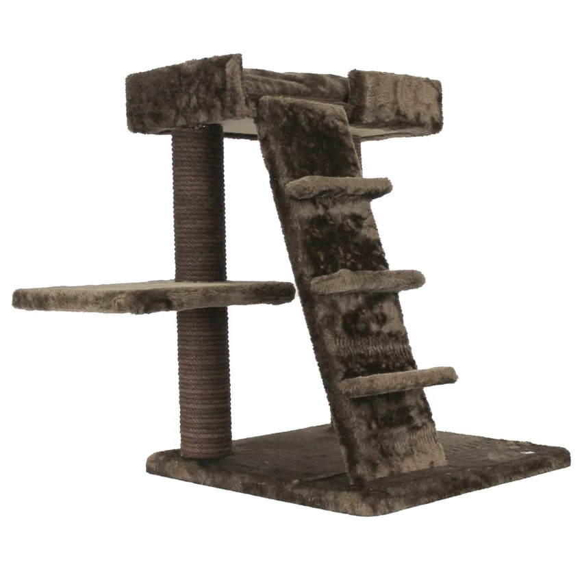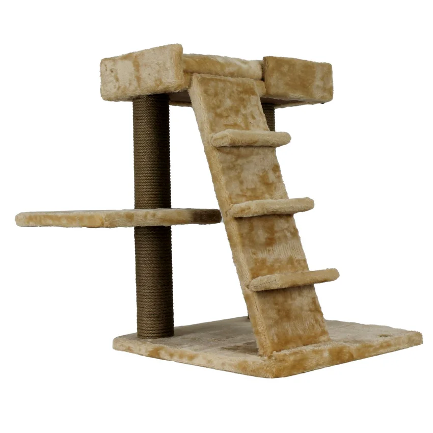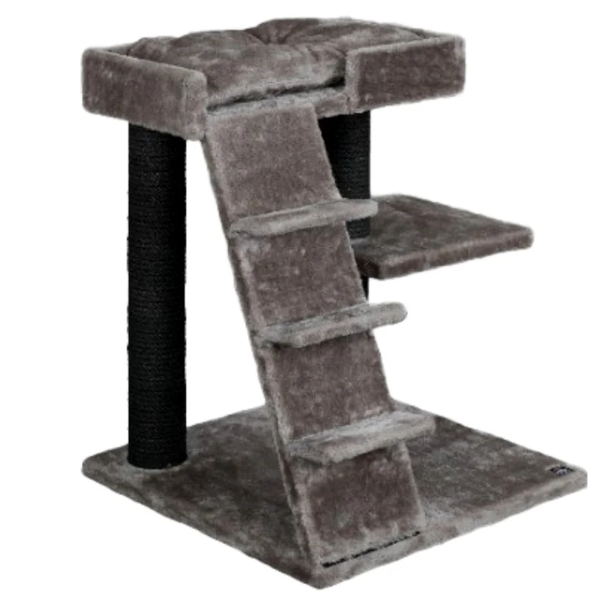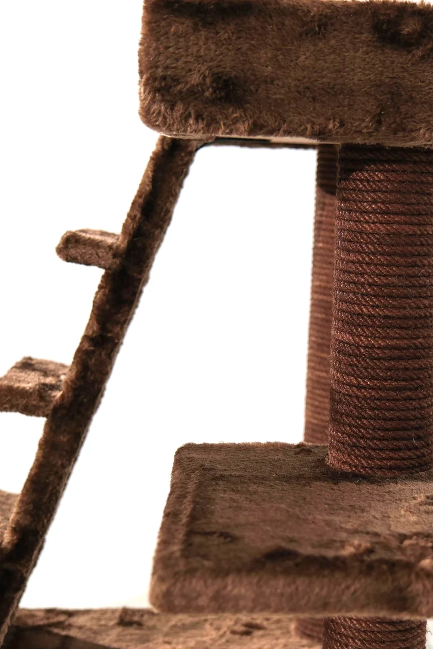 Tırmalama direklerinde kullanılan 6mm doğal jüt halat, masuralara her noktadan yapıştırılarak sağlamlık en üst düzeye çıkarılmıştır. Tırmalama direklerinin alt ve üst kapaklarında MDF kullanılmaktadır.