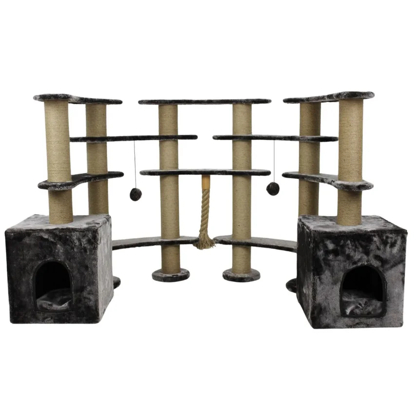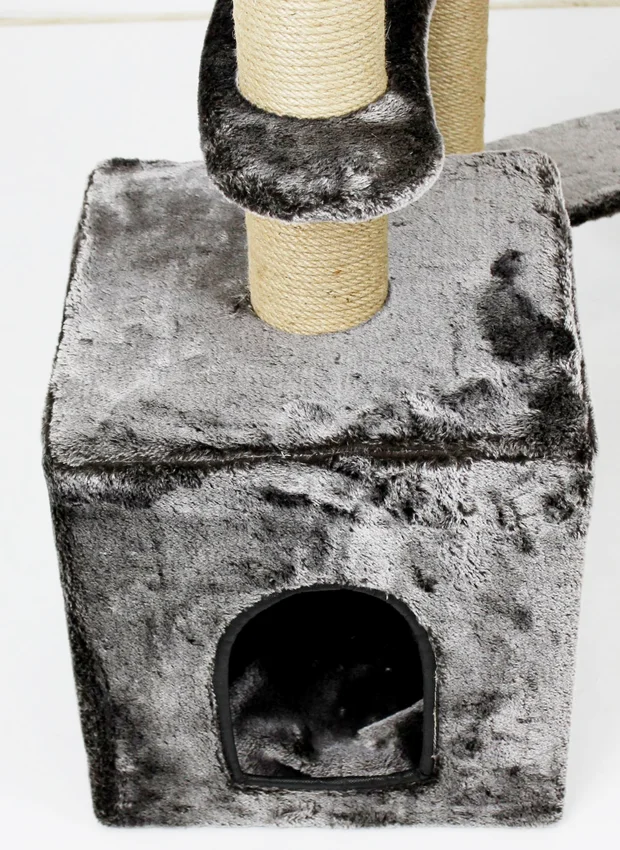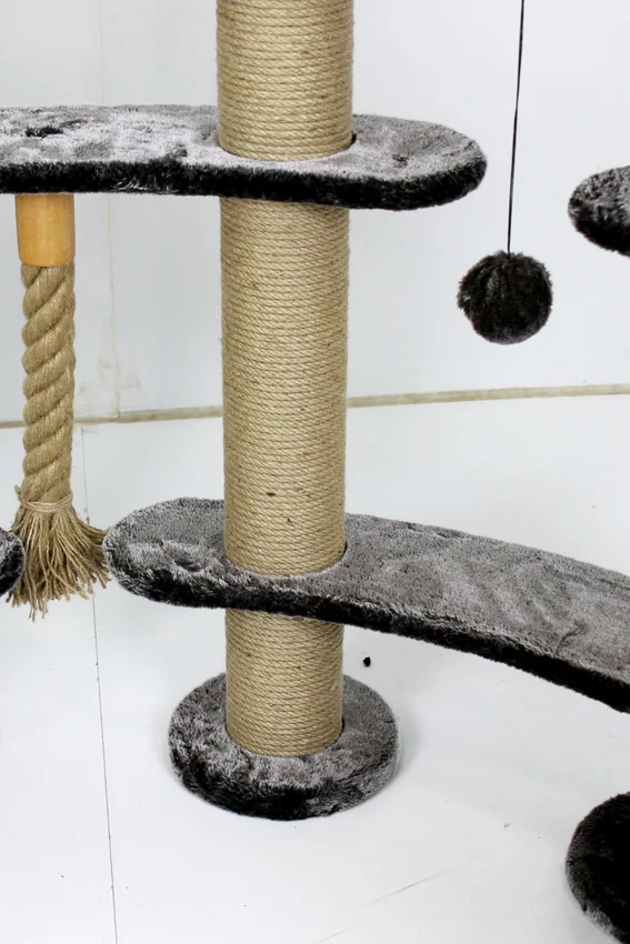 Tırmalama direklerinde kullanılan 6mm doğal jüt halat, masuralara her noktadan yapıştırılarak sağlamlık en üst düzeye çıkarılmıştır. Tırmalama direklerinin alt ve üst kapaklarında MDF kullanılmaktadır.