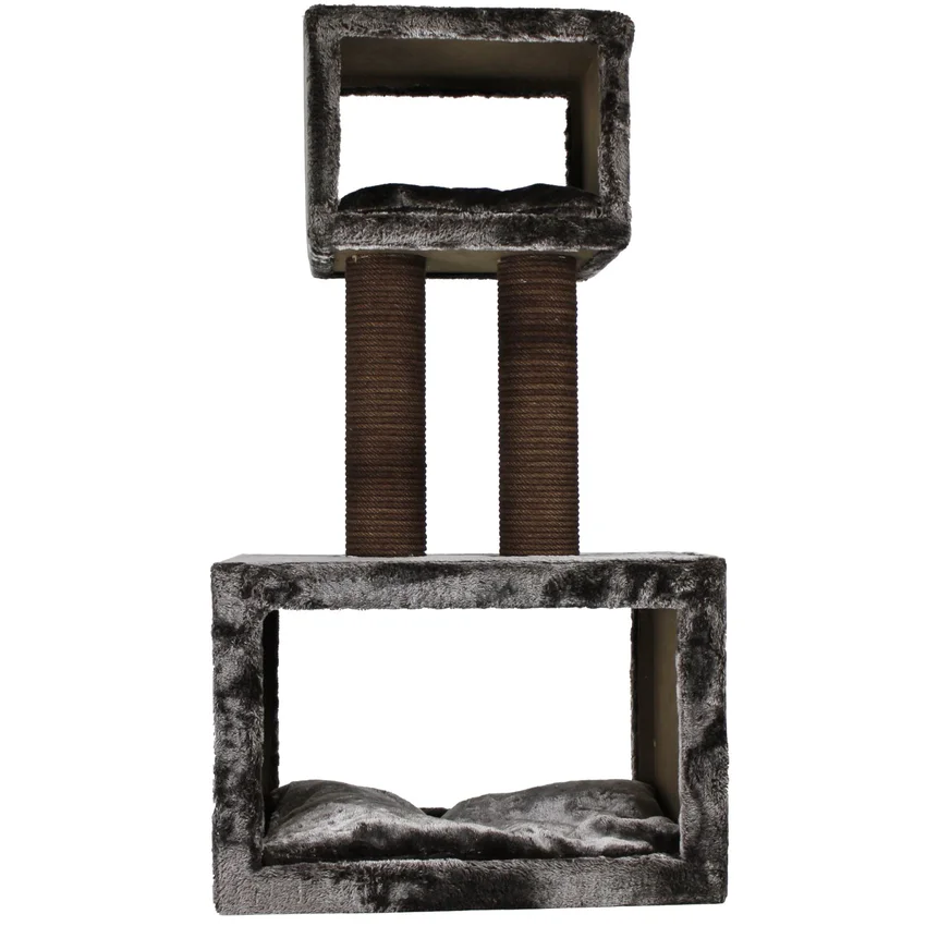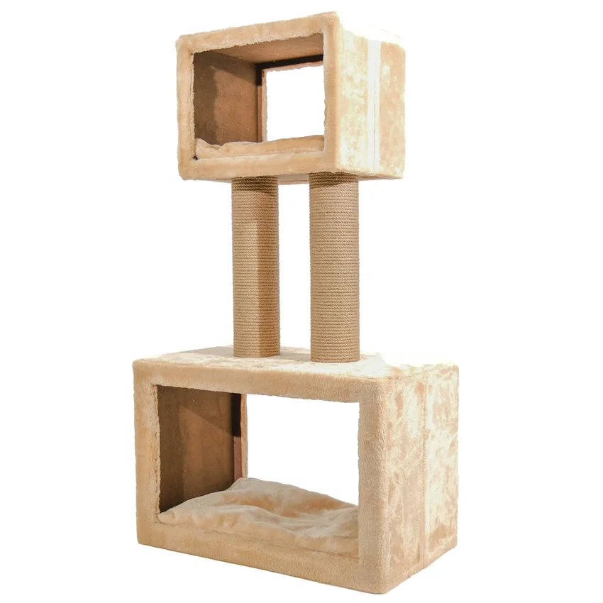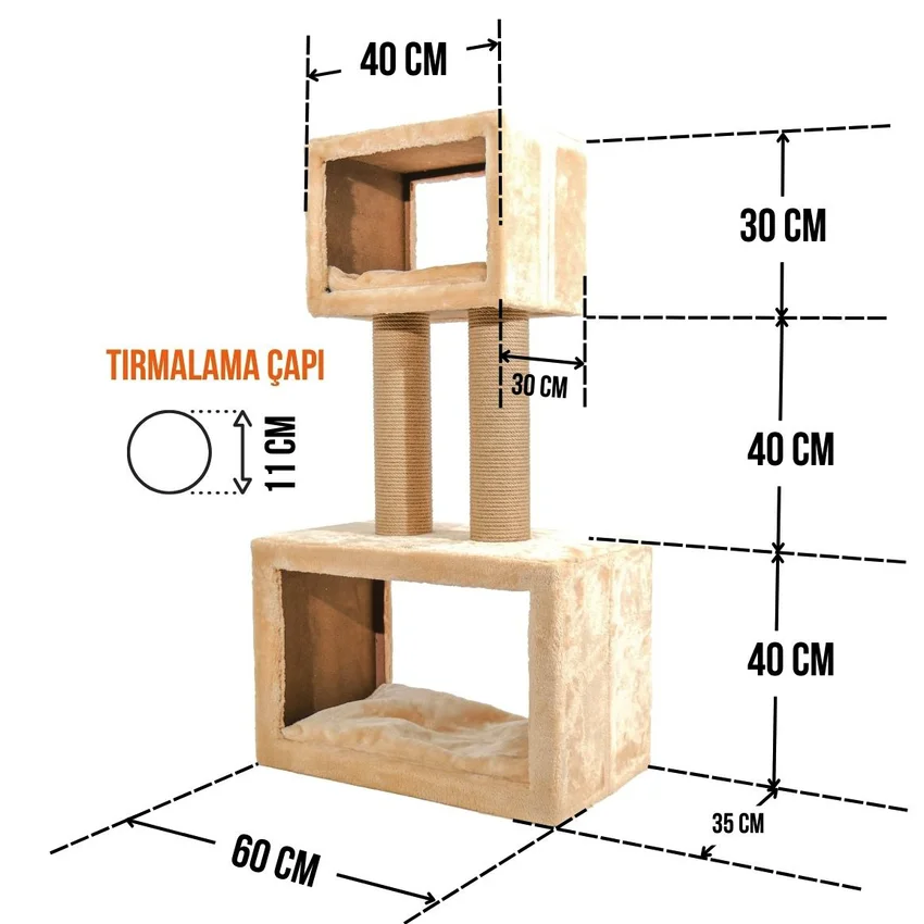 Tırmalama direklerinde kullanılan 6mm doğal jüt halat, masuralara her noktadan yapıştırılarak sağlamlık en üst düzeye çıkarılmıştır. Tırmalama direklerinin alt ve üst kapaklarında MDF kullanılmaktadır.