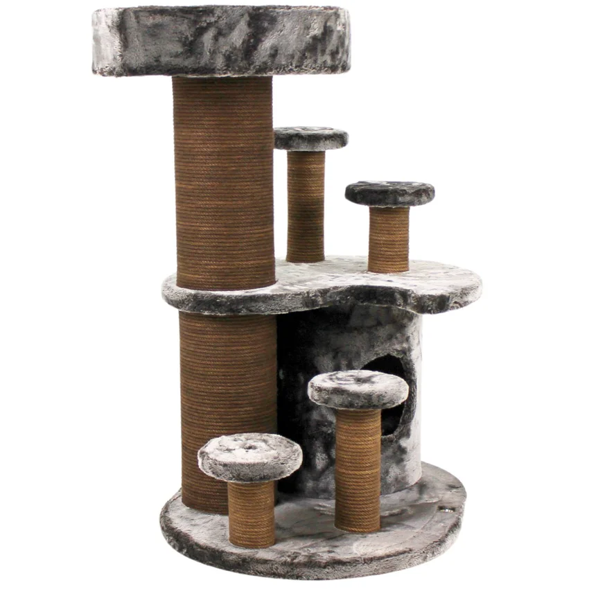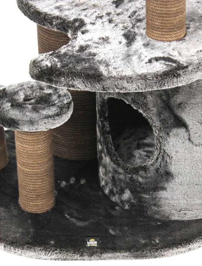 Tırmalama direklerinde kullanılan 6mm doğal jüt halat, masuralara her noktadan yapıştırılarak sağlamlık en üst düzeye çıkarılmıştır. Tırmalama direklerinin alt ve üst kapaklarında MDF kullanılmaktadır.