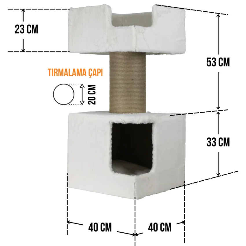 Tırmalama direklerinde kullanılan 6mm doğal jüt halat, masuralara her noktadan yapıştırılarak sağlamlık en üst düzeye çıkarılmıştır. Tırmalama direklerinin alt ve üst kapaklarında MDF kullanılmaktadır.