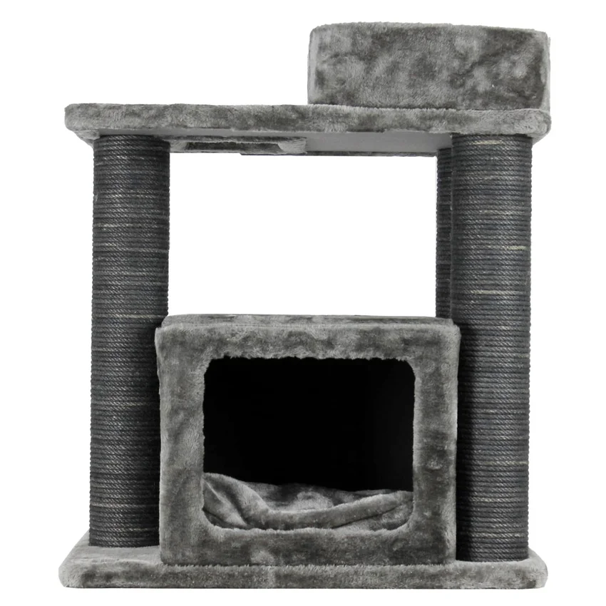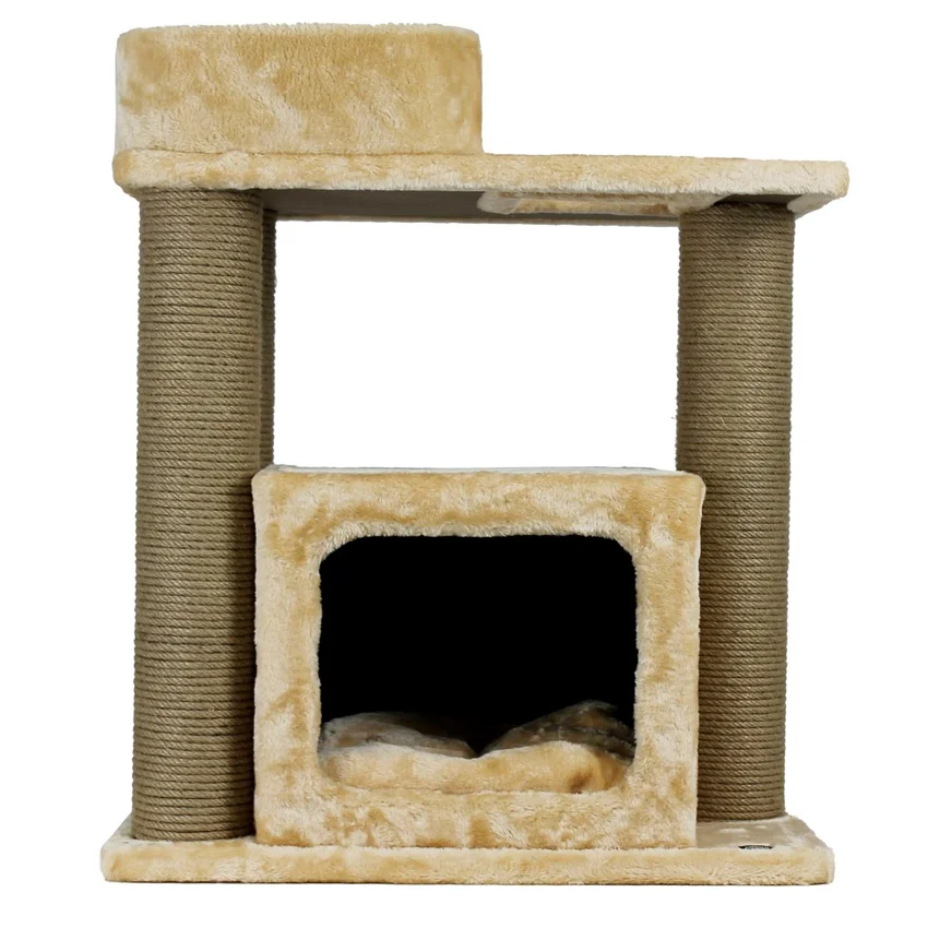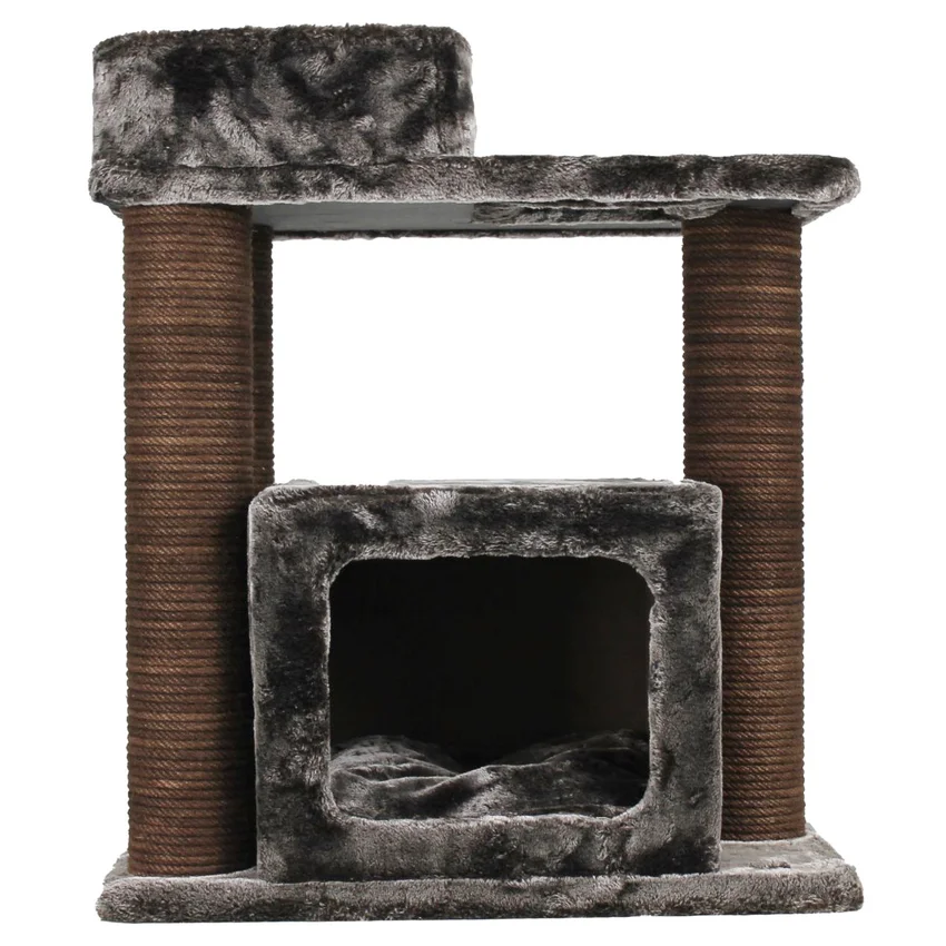 Tırmalama direklerinde kullanılan 6mm doğal jüt halat, masuralara her noktadan yapıştırılarak sağlamlık en üst düzeye çıkarılmıştır. Tırmalama direklerinin alt ve üst kapaklarında MDF kullanılmaktadır.